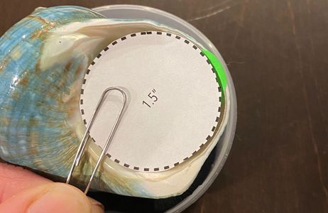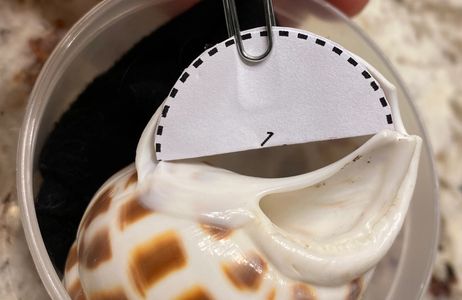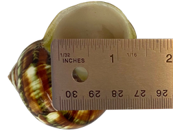 If you're unable to measure with a caliper, ruler, or can't print the template, we can help you measure. Take a picture exactly as shown and email it to info@hermitharbor.com. Make sure the image is in focus and the shell's opening is not tilted or angled, this will distort the measurements. We will measure the correct points on the shell and find the size based on your ruler. Make sure the entire opening of the shell is visible and facing the camera head on. Although this method might not match the accuracy of having the shell in hand, we can get a good enough measurement to point you in the right direction.